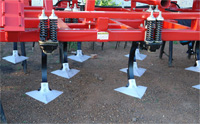Рабочие органы — стрельчатые лапы шириной 330 мм испанской фирмы «Белотта». Мощные стойки лап имеют специальную дугообразную форму для предотвращения забивания, изготовлены из пружинной стали 50ХГ и прошли термообработку до твердости 65 единиц по Бринеллю. В процессе работы стойки совершают микроколебания, что снижает тяговое сопротивление. Массивный чугунный кронштейн изготовлен с многократным запасом прочности. Подвеска стойки на двух пружинах и пружинная стойка лап предотвращают поломку при наезде на препятствие. В процессе работы не требуется специальной регулировки рабочих органов, что максимально упрощает обслуживание. Специальная конструкция пружинных стоек рабочих органов и кронштейнов предотвращает забивание растительными остатками даже при высокой стерне. Прекрасно работают по свежеубранному полю с разбросанной соломой. ТРЕХРЯДНАЯ ПРУЖИННАЯ БОРОНА. Предназначена для выравнивания почвы пружинными зубьями, уменьшения гребнистости и создания одинакового слоя почвы над семенами, что обеспечивает равномерное развитие растений по всему полю. Представляет собой трехрядные секции пружинных борон, закрепленных на несущем кронштейне. Пружинные зубья изготовлены из пружинной стали 60С2 с последующей термообработкой. |