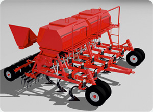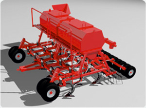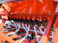 Основные составные части посевного комплекса: рама, два бункера для семян и удобрений, стрельчатые лапы-сошники, трехрядная борона, двухбалансирное опорно-прикатывающее устройство, передние опорные колеса, механическая система высева семян и удобрений, загрузочный шнек. Стрельчатые лапы-сошники обрабатывают почву и формируют семенное ложе. Регулировка глубины производиться при помощи изменения высоты передних опорных колес и перестановки регулировочных клипс на задних подъемных гидроцилиндрах. Семена и удобрения из бункера поступают на катушку дозатора, а затем в семяпровод. Расход посевного материала регулируется при помощи дозаторов. После высева трехрядная встроенная пружинная борона заделывает полосу посева мульчированным слоем, а катки прикатывают полосу посева. Задние прикатывающие катки также выполняют роль опорных катков. Двухбалансирная подвеска опорно-прикатывающего устройства обеспечивает копирование самого сложного рельефа поля. Для загрузки семян и удобрений используется шнек-загрузчик посевного комплекса. Перевод в транспортное положение производится при помощи задней навески трактора и гидроцилиндров опорно-прикатывющего устройства. УНИКАЛЬНАЯ И КОМПАКТНАЯ КОНСТРУКЦИЯ. Уникальная двухбалансирная подвеска опорно-прикатывающих колес позволяет идеально копировать самый сложный рельеф поля. Встроенная трехрядная борона, совмещенные опорно-прикатывающие колеса обеспечивают компактность и мобильность посевного комплекса. Не требуется прицепных борон и катков. МОЩНАЯ РАМА. Тяжелая техника в комбинации с мощными тракторами ставит повышенные требования к стабильности конструкции рамы. Рама сварена из квадратных труб 100Х100 толщиной стенки 6 мм. Материал труб — высококачественная сталь 09Г2С. Сварка ведется на полуавтоматах с добавлением аргона. Работают только квалифицированные сварщики. Каждый шов проходит инструментальный контроль. СОБСТВЕННЫЙ ШНЕК-ЗАГРУЗЧИК. Собственный шнек-загрузчик позволяет работать без специального загрузчика семян и удобрений. Для загрузки бункера достаточно обычного самосвала. ЛЕГКАЯ РЕГУЛИРОВКА. Настройка глубины выполняется путем установки специальных пальцев в регулировочное отверстие переднего опорного устройства и установкой регулировочных клипс на штоке заднего подъемного гидроцилиндра. СЕВ ОЗИМЫХ И КУЛЬТИВАТОР. Прекрасно работают как культиваторы сплошной обработки на глубину до 12 см. Способны полностью заменить дискаторы, дисковые бороны и другие орудия для основной обработки. Имея один посевной комплекс «AGROMASTER» хозяйству не требуется больше никаких орудий для обработки почвы. Являются идеальным орудием для сева озимых. Сев озимых производиться за один проход по убранному полю. |